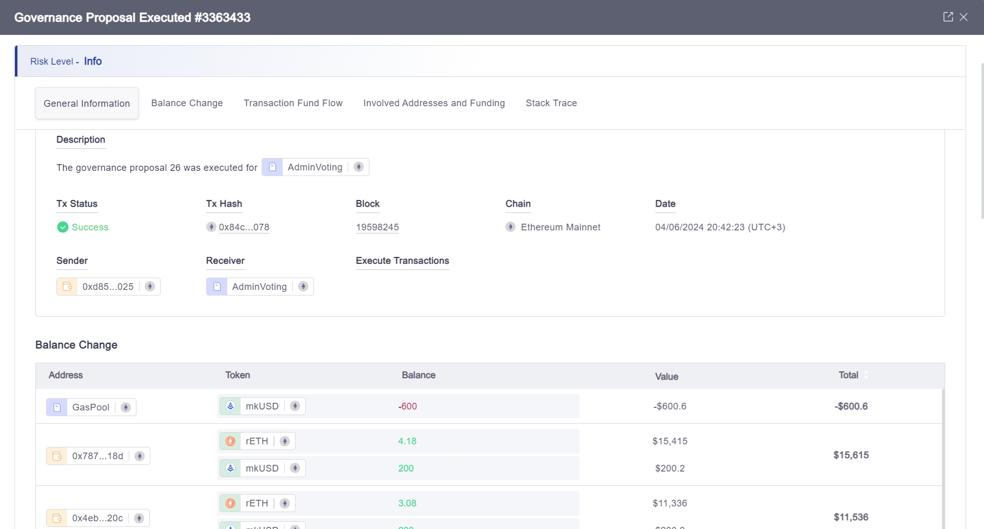 Governance Proposal Executed