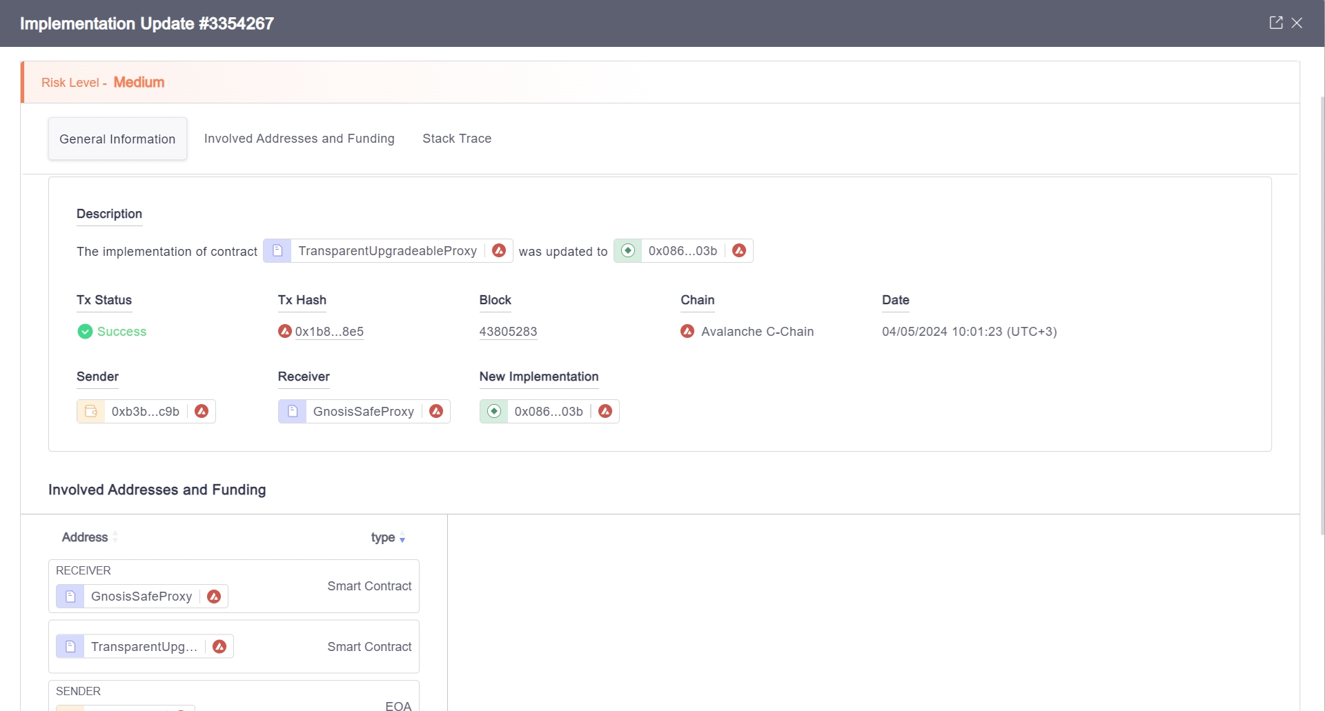 The Implementation Update event is triggered when a new version of the contract's code is deployed. A change in the code can be done by the proxy admin, when the upgrade functionality is bypassed or when a governance proposal is executed and could control such an update. All of these are attack vectors that can result in a proxy upgrade.