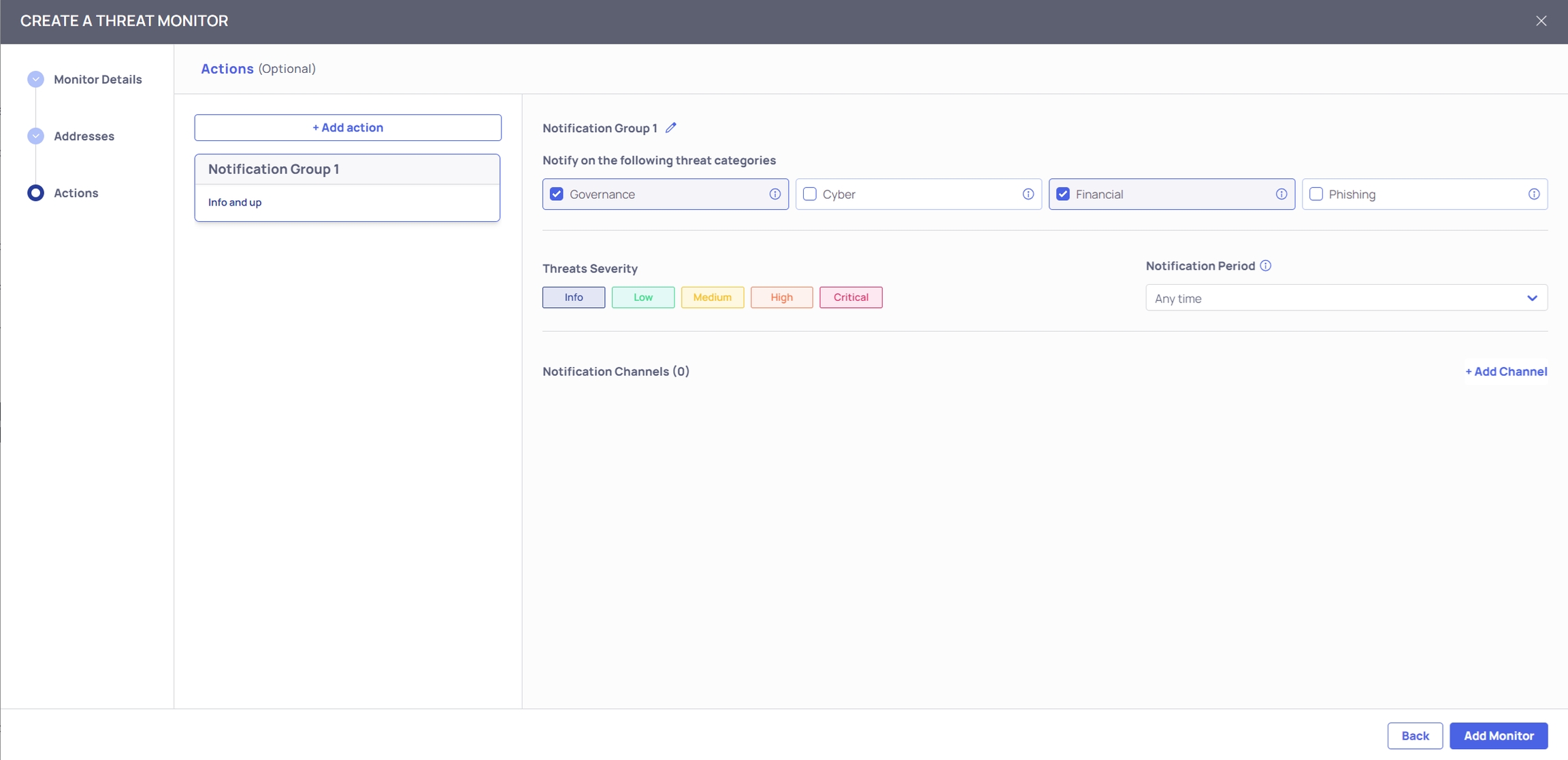 Choose only Governance and Financial threats notifications